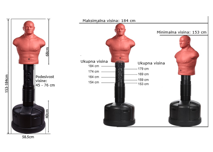 Samostojeća lutka za udaranje jedan je od najrealističnijih i najfunkcionalnijih rekvizita za trening. Omogućuje vam da usavršite vještine i razvijete snagu te da trenirate kao s pravim sparing partnerom.