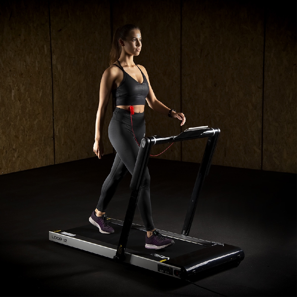HMS LOOP12 traka za trčanje dizajnirana je za intenzivnu kućnu upotrebu. Sustav amortizacije sa silikonskim gelom osigurava lagan i elastičan korak te smanjuje opterećenje na zglobove. Traka za trčanje ima prostranu površinu za trčanje dimenzija 125 × 45 cm, što omogućuje sigurnost i slobodu kretanja.