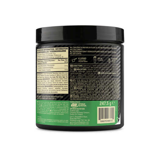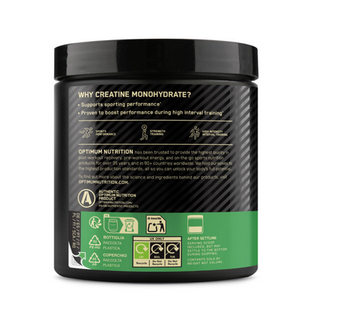 Mikroniziran kreatin od Optimum Nutritiona koji ima veću topivost. Kreatin povisuje tjelesne performanse u uzastopnim kratkotrajnim vježbama visokog intenziteta