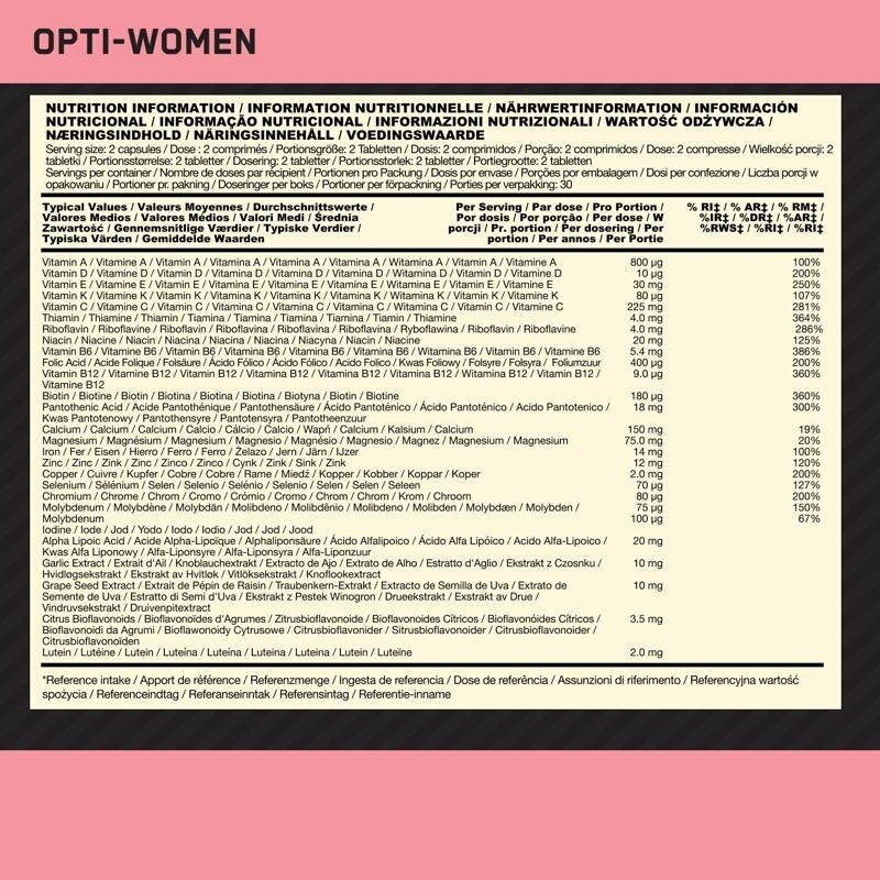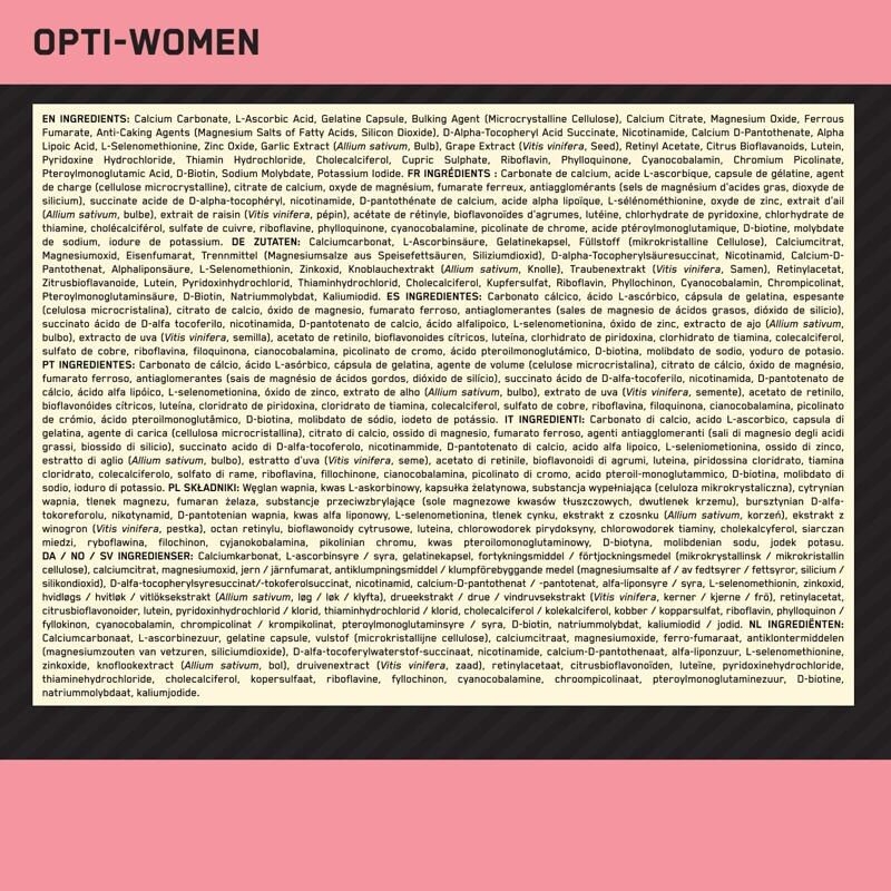 Žensko tijelo ima specifične potrebe kada je riječ o vitaminima i mineralima. Opti-Women je osmišljen kako bi pružio ciljanu podršku, posebno u razdobljima pojačanog napora, stresa ili intenzivnih treninga.