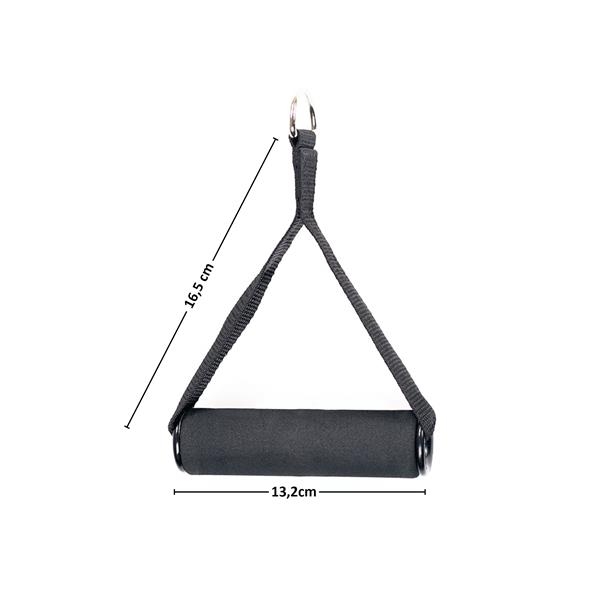 Ergonomske pjenaste ručke pružaju udobnost tijekom vježbanja i štite ruke od žuljeva. Mekana podloga potiče čvršći stisak, čime se automatski aktiviraju i mišići podlaktice. Kvalitetne trake za pričvršćivanje na sajlu omogućuju siguran rad i s većim opterećenjima.